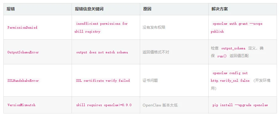 2026 年 Agent Skills 生态爆发,OpenClaw 迅速成为开发者标配,我也跟风上手,却在第一天就遭遇 5 个报错,熬夜调试至凌晨。后续使用中又陆续踩坑无数,索性整理了所有报错案例与解决方案。本文涵盖 OpenClaw 0.9.x 版本最常见的 12 种报错,从初始化到技能链,从依赖到内存,助力开发者避开雷区、高效排障。