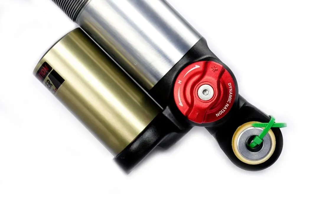GP版定位为全地形通用型减振器,更适合长途穿越与多路况场景。采用22mm加粗活塞杆配合外置氮气瓶结构,散热效率更高,连续高强度工况下阻尼性能更稳定。配备9段压缩/9段回弹独立调节,调校范围更宽。