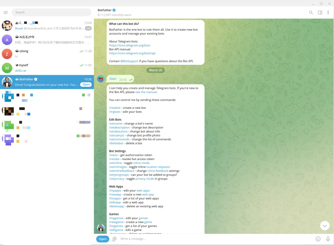 将 Telegram Bot 的token 丢给openclaw 完成对接;