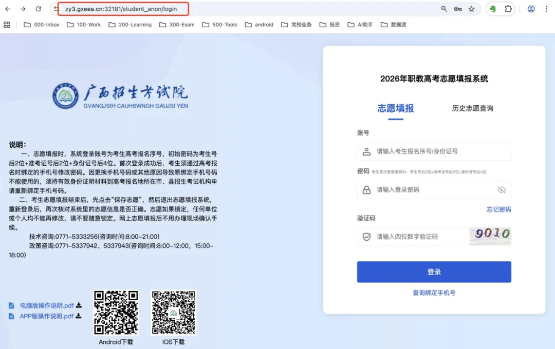 在电脑浏览器上搜索“广西招生考试院”进入官网点击志愿填报;