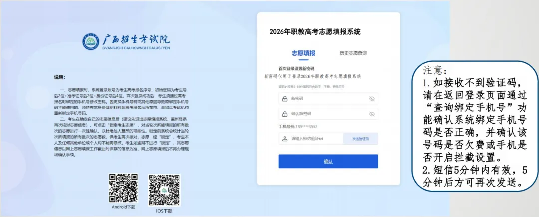 1.考生通过职教高考报名时绑定的手机号进行登录和修改密码。因更换手机号码或者其他原因导致原绑定手机号码不能使用的,须持有效身份证证明材料到职教高考报名地所在市、县招生考试机构申请重新绑定手机号。