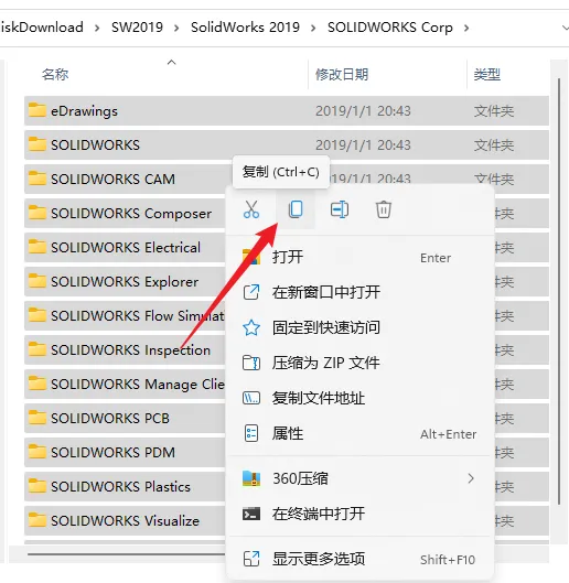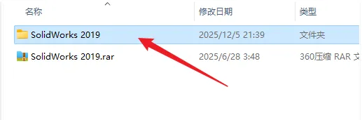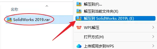 1.鼠标右击下载的【SolidWorks 2019】压缩包,选择解压到【SolidWorks 2019】。