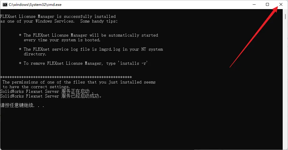 9.服务启动成功,看到“按任意键继续”后,敲Enter回车键退出此窗口。