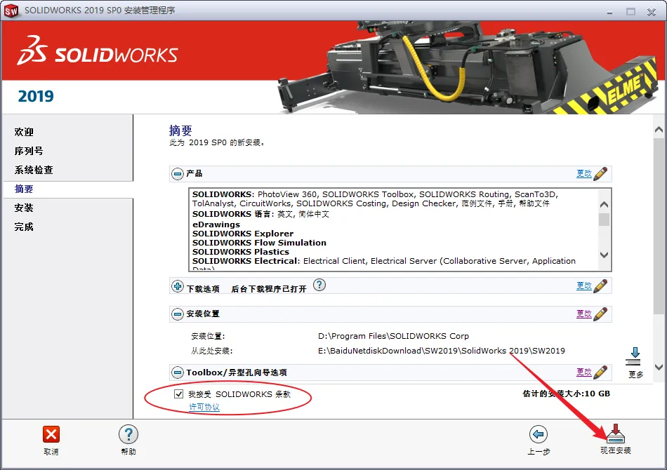 18.勾选我接受……点击现在安装。