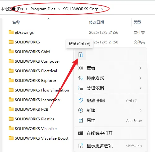 24.依次打开图示路径,在空白处,右键粘贴刚刚复制的文件。