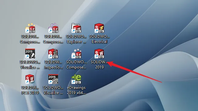28.双击运行桌面SW2019软件(桌面其它不常用的图标可以删除)。