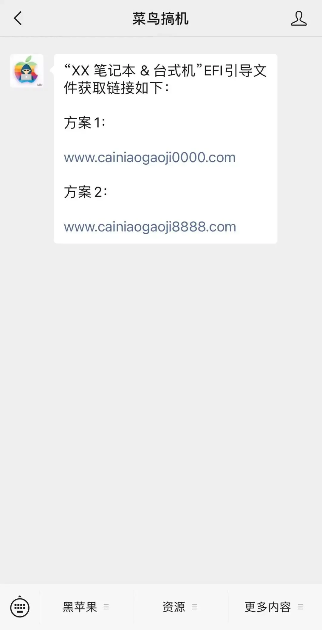 (2)打赏成功后,微信公众号后台自动弹出 EFI 引导文件获取链接。
