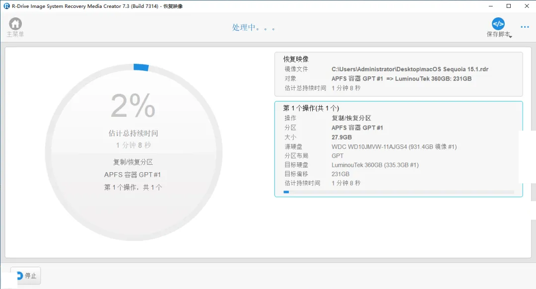 (18)等待恢复进度完成。