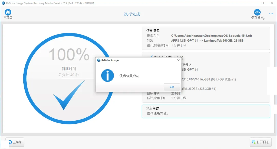 (19)恢复完成后,点击 OK → 关闭软件。