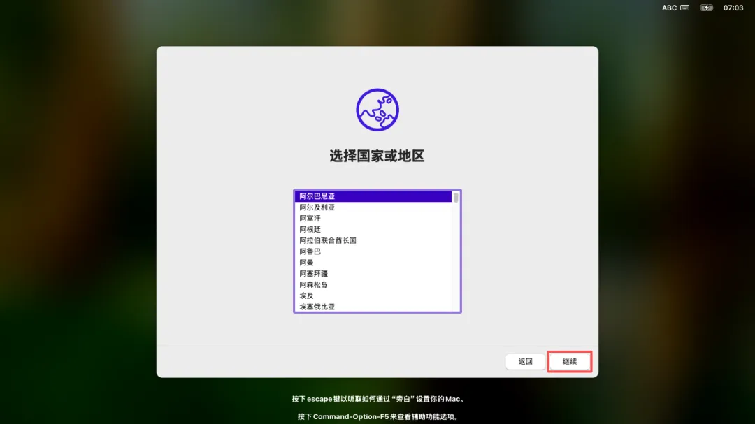 (37)进入「选择国家或地区」界面 → 选定「中国大陆」→ 点击右下角「继续」。