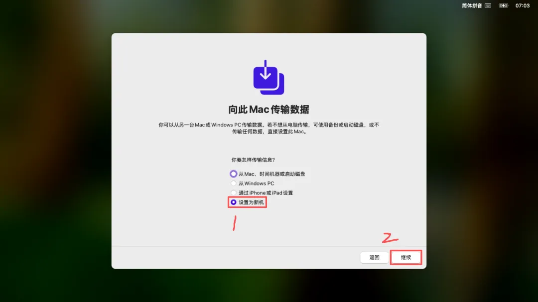 (38)选择「设置为新机」→ 点击右下角「继续」。