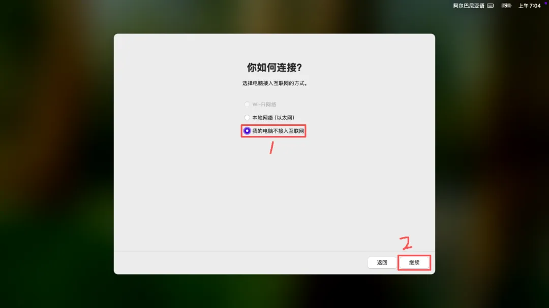 (43)选择「我的电脑不接入互联网」→ 点击右下角「继续」。