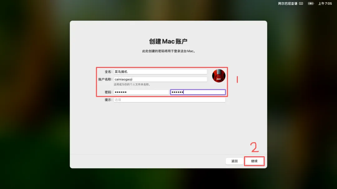 (45)输入 Mac 账户名称 & 密码 → 点击右下角「继续」。