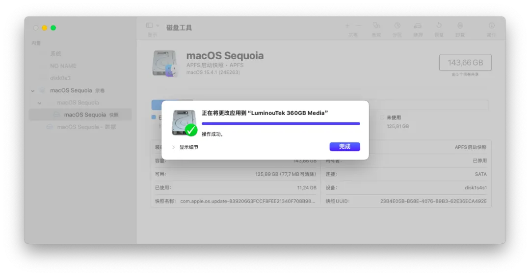 (20)恢复后的 macOS 系统分区如下。