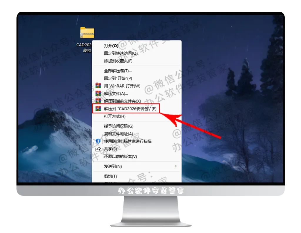1.找到并选择已下载好的 【CAD2026安装包】 压缩包并进行解压操作