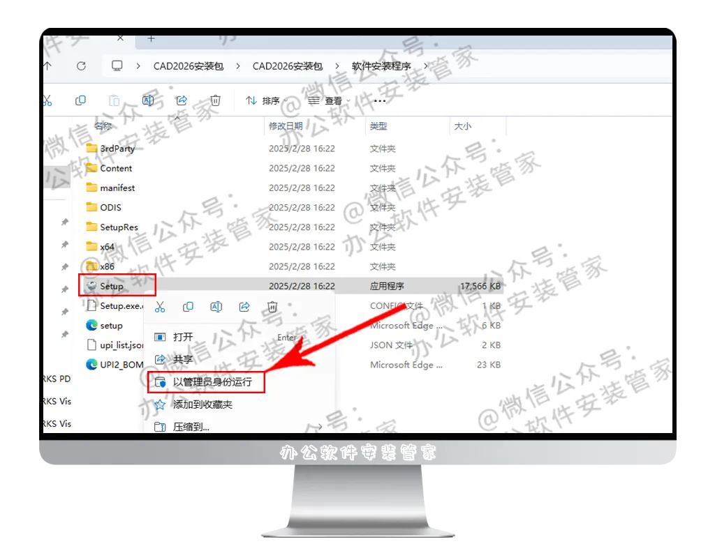 4.选中【Setup】右键以管理员身份运行