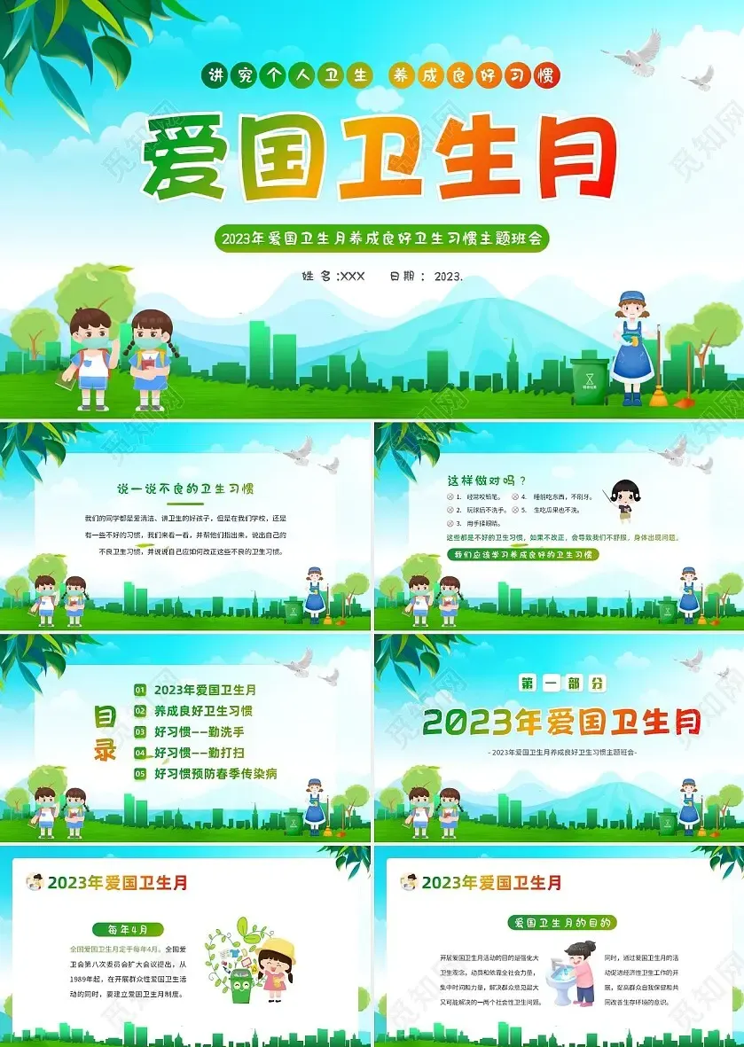 可爱卡通全国爱国卫生月主题班会PPT模板