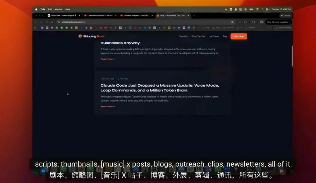 YouTube 创作者 Beau Johnson 分享了他的“Content Machine”系统——一套基于 OpenClaw 构建的 10 个 AI Agent 协同工作的内容生产流程。