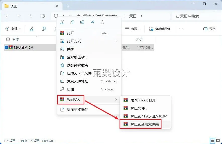 1.右键【下载的安装包】选择【解压当前文件夹】
