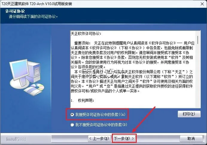 3.勾选【我接受】,点击【下一步】
