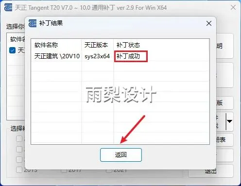 13.显示【补丁成功】之后,点击【返回】并关闭破解软件