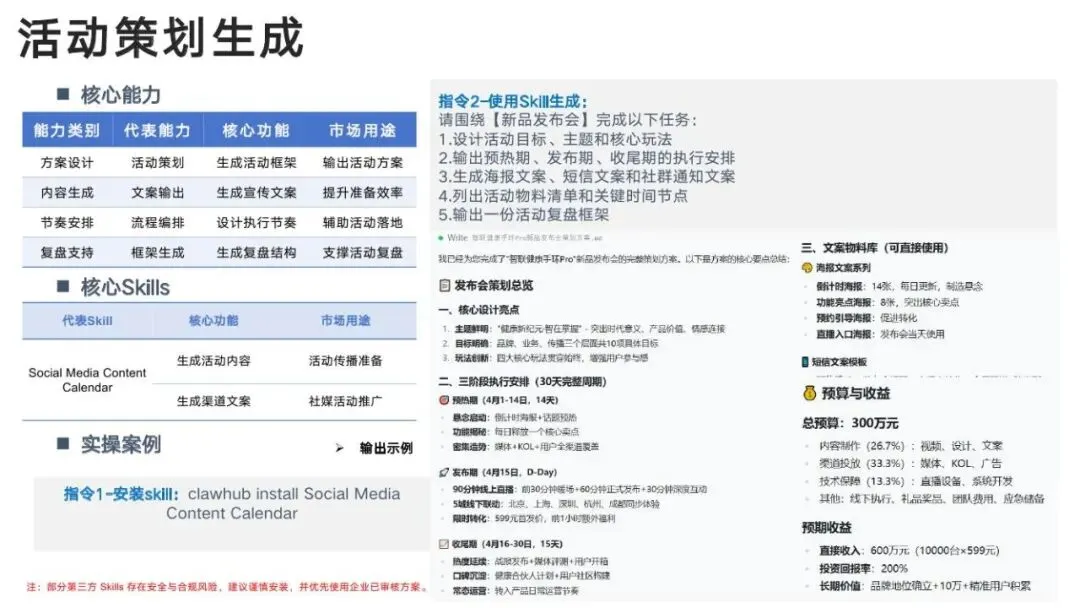 清华&北航:OpenClaw在企业办公中的应用(附完整报告下载)清华&北航:OpenClaw在企业办公中的应用(文末附完整报告pdf下载地址)此报告面向企业小白用户,科普OpenClaw在八大领域的应用:人力资源(招聘、培训、绩效)、财务(报销审核、数据分析、应收应付)、运营(数据分析、活动方案、反馈分析、SOP生成)、销售(线索挖掘、方案生成)、市场(内容生成、活动策划、调研分析)、技术(文档生成、代码评审、测试用例)、产品(需求分析、定价策略)及法务(合同审查、函件生成)。各模块均提供核心能力、Skills及实操案例。未完待续,请参考完整版报告完整报告请关注公众号(GIS极客)后台回复'清华&北航2',获取下载链接。