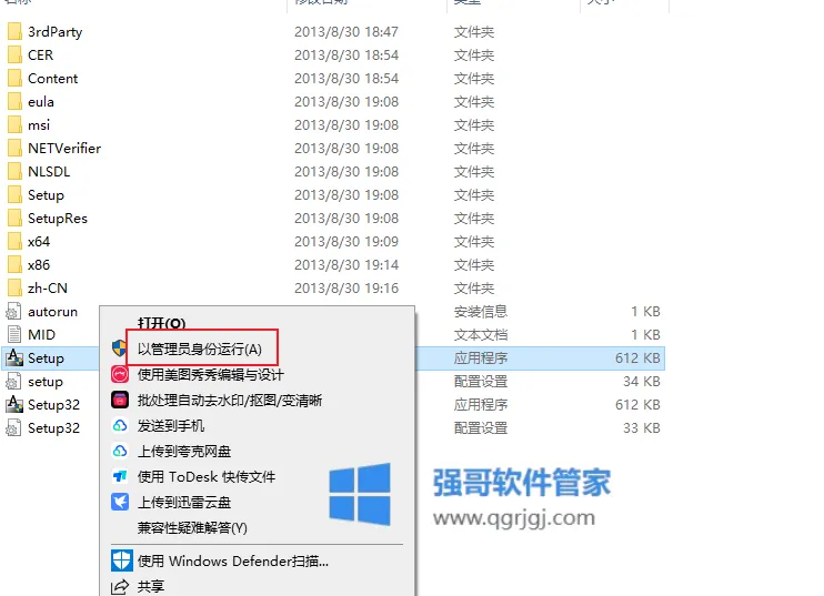 2.打开【Setup】文件夹,选中【setup】选择【以管理员身份运行】