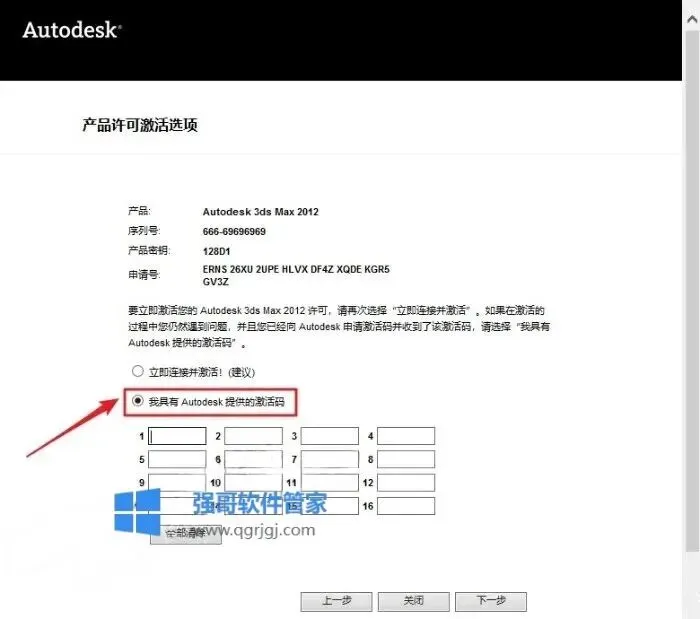 13.选择【我具有Autodesk提供的激活码】(不要关闭此界面)
