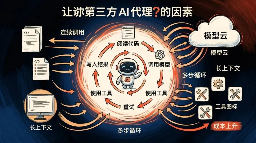 但 OpenClaw 这类代理工具不是这么干活的。它会连续调模型,反复读写上下文,自己拆任务,自己循环,跑到一半还会叫工具、查文件、回头重试。一个任务下来,不是几轮对话,像是一条小型流水线。