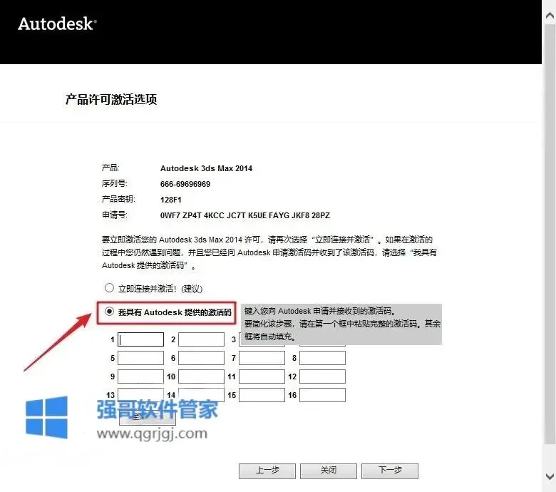 13.选择【我具有Autodesk提供的激活码】(不要关闭此界面)