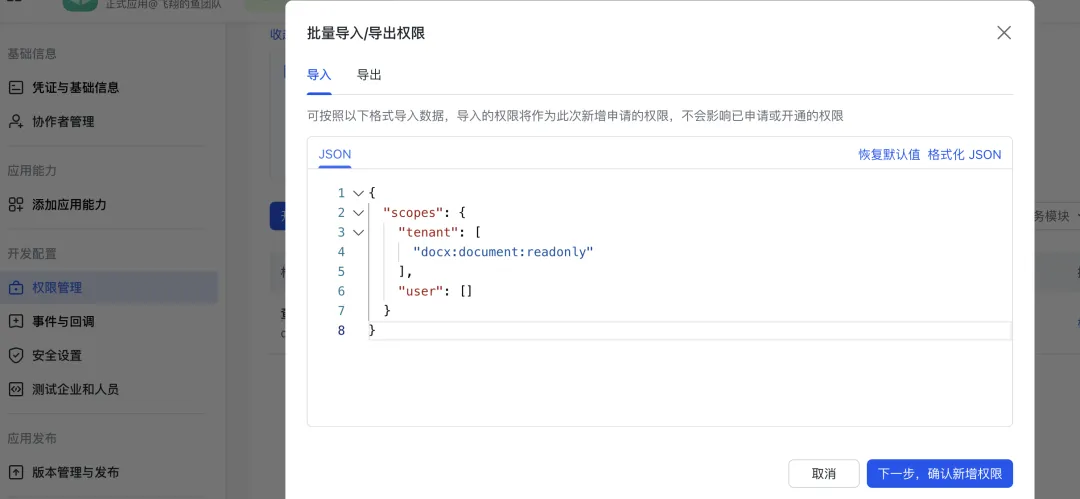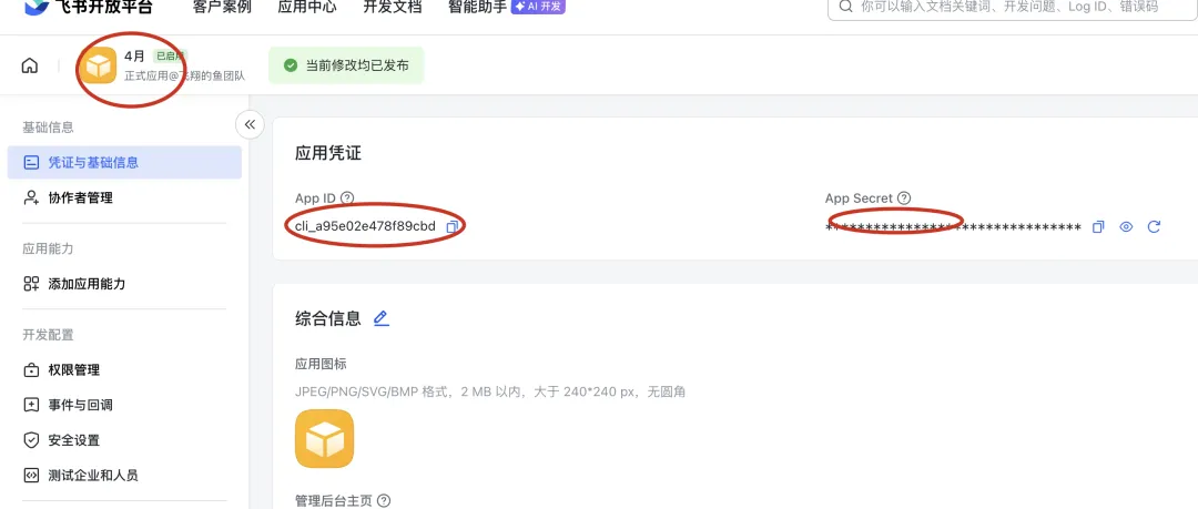 (这个时候,你的飞书文档已经和应用关联起来,也就是以后有第一步的应用)