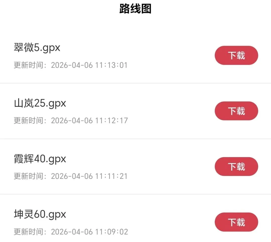 请使用具有导航功能的运动手表或运动APP(两步路户外助手APP)提前导入本次活动路线轨迹。可参考以下步骤,下载轨迹:
