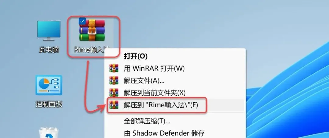 1.鼠标右击【Rime輸入法】压缩包(win11及以上系统需先点击“显示更多选项”)【解压到 Rime輸入法】。