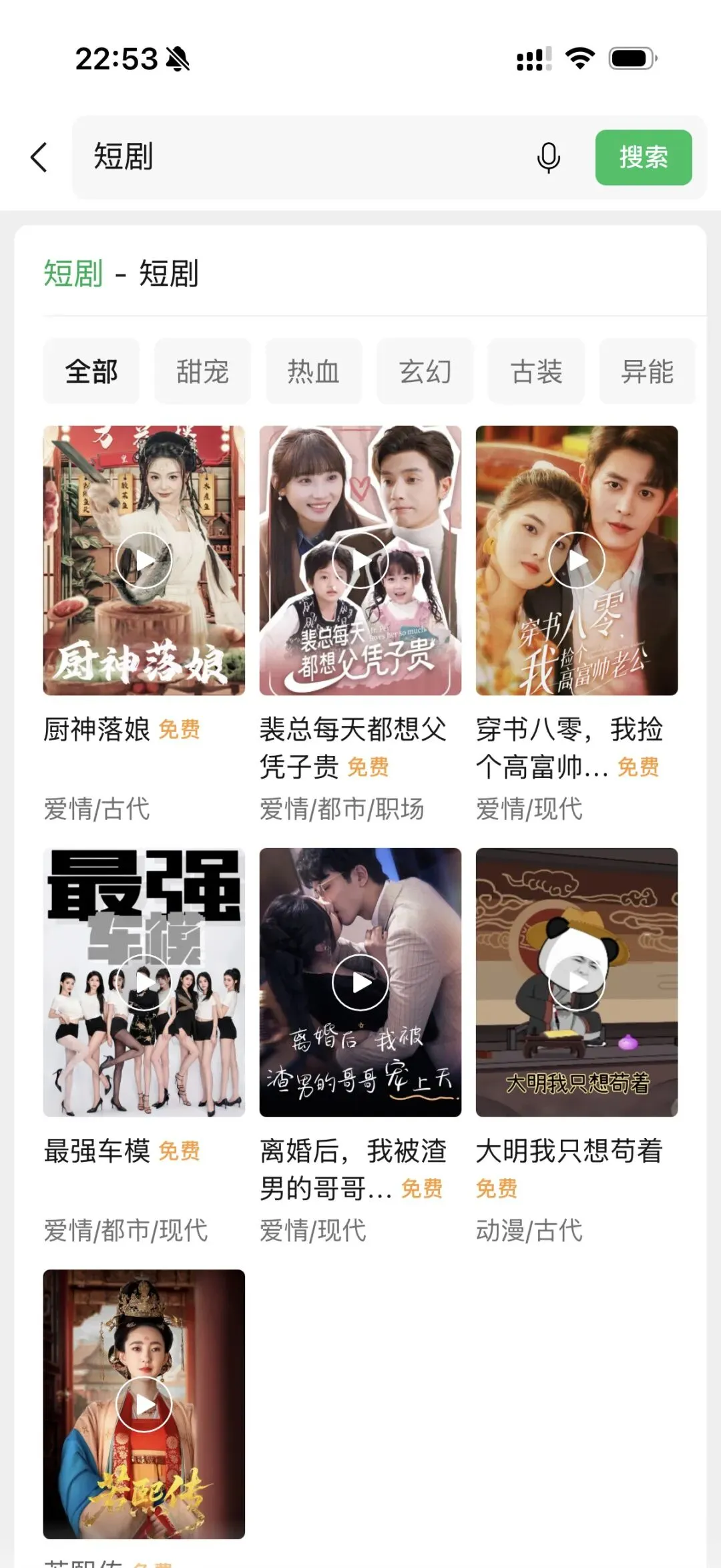 进入短剧专区后,有各种分类,比如甜宠,热血,玄幻,古装等,方便你快速找到想看的类型。点击剧集封面就可以直接观看。