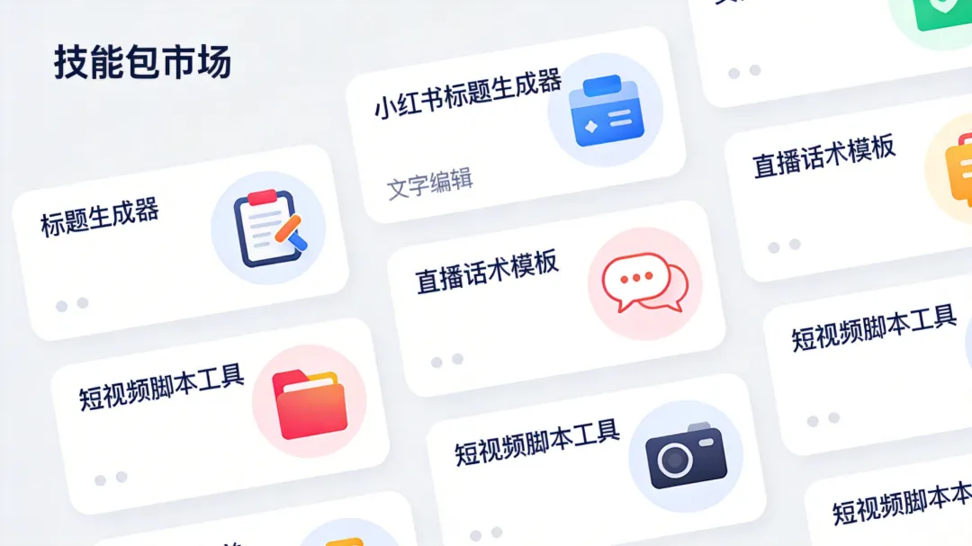 比如小红书标题生成器、直播话术模板、朋友圈文案生成器……上传到OpenClaw的技能市场,别人下载一次,你收一次钱。