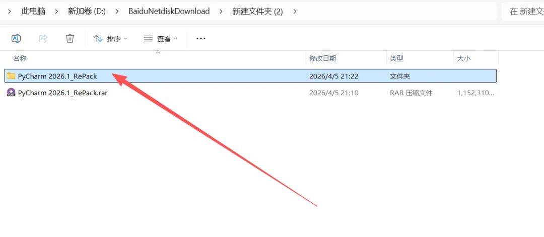 2、双击进入【PyCharm 2026.1_RePack】文件夹,以管理员身份运行【