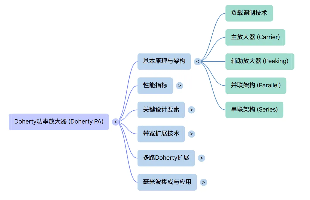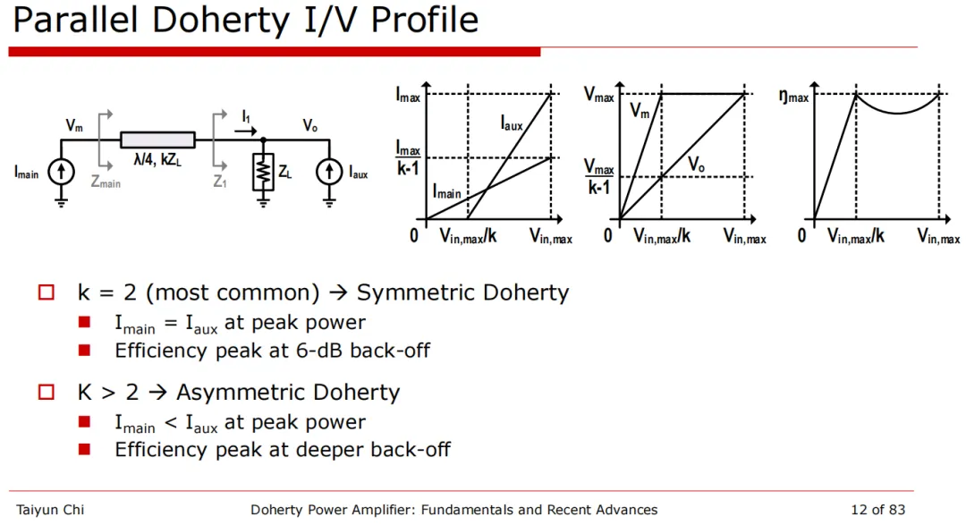 并行架构(Parallel Doherty): 最经典的形式。通过调整调制比例 k(如对称 k=2 或非对称 k>2),设计者可以精准定义效率峰值在 6dB 或更深回退点的位置。