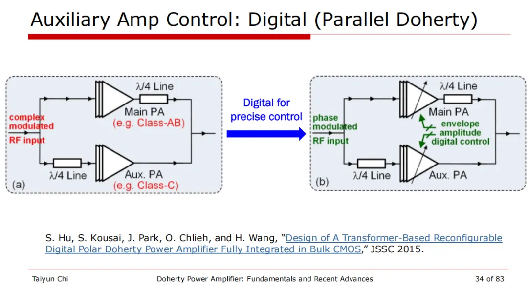 模拟时代的 Doherty 经常受困于辅助放大器开启斜率不精准、偏置调节困难等痼疾。而现在,数字化极致演进(Extreme Digitalization) 正在重塑这一古老架构。