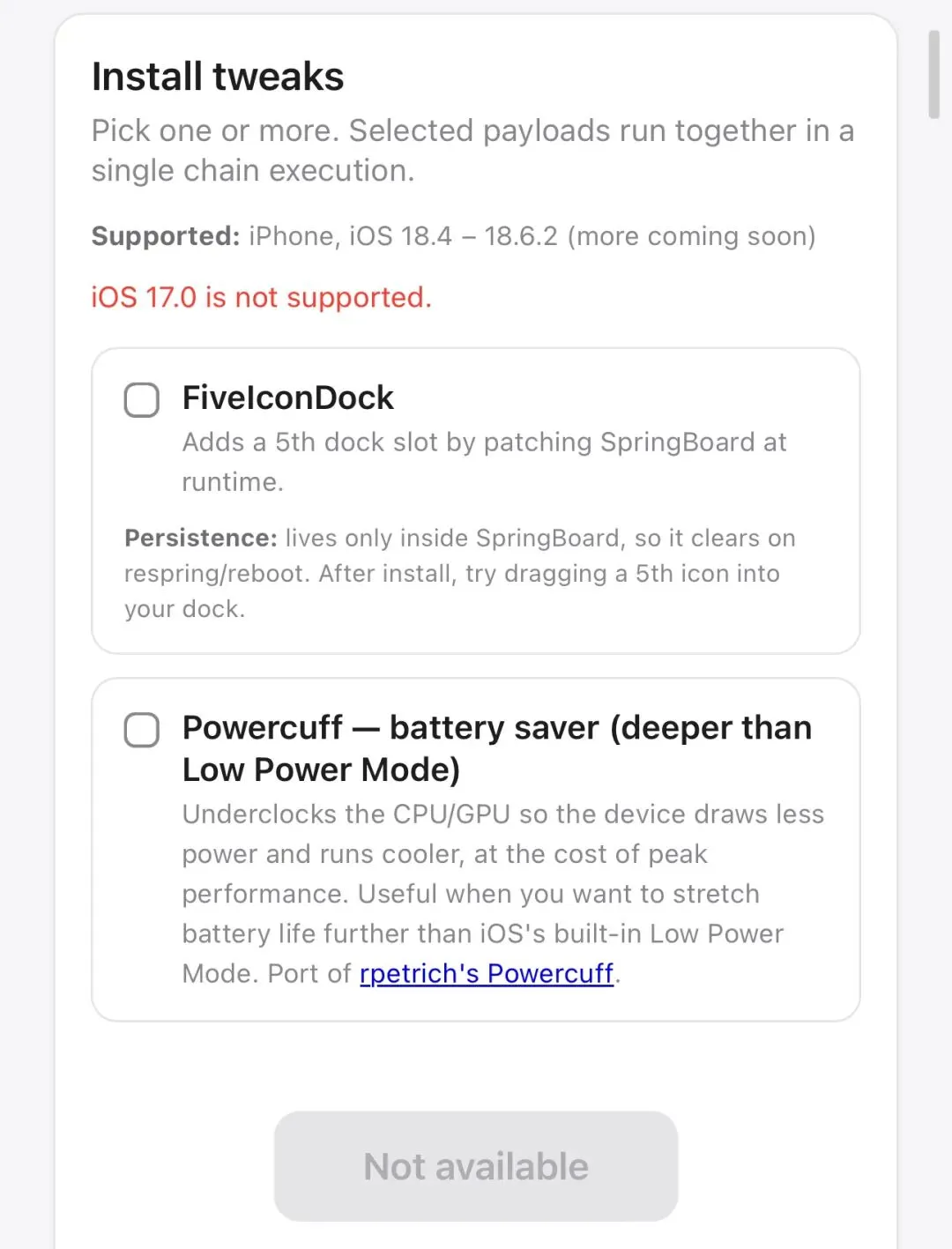 不过这个就比较卡版本了,只支持:iOS 18.4 - 18.6.2像 18.7 这类版本,是不行的。