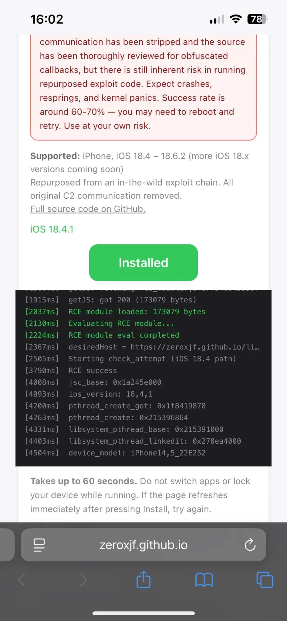 本质上还是那套最近挺火的WebKit(DarkSword)漏洞利用,也就是说,它不是系统自带功能,也不是插件,而是通过 Safari 打开网页,直接修改 Dock 所以你会看到一个很离谱的点: