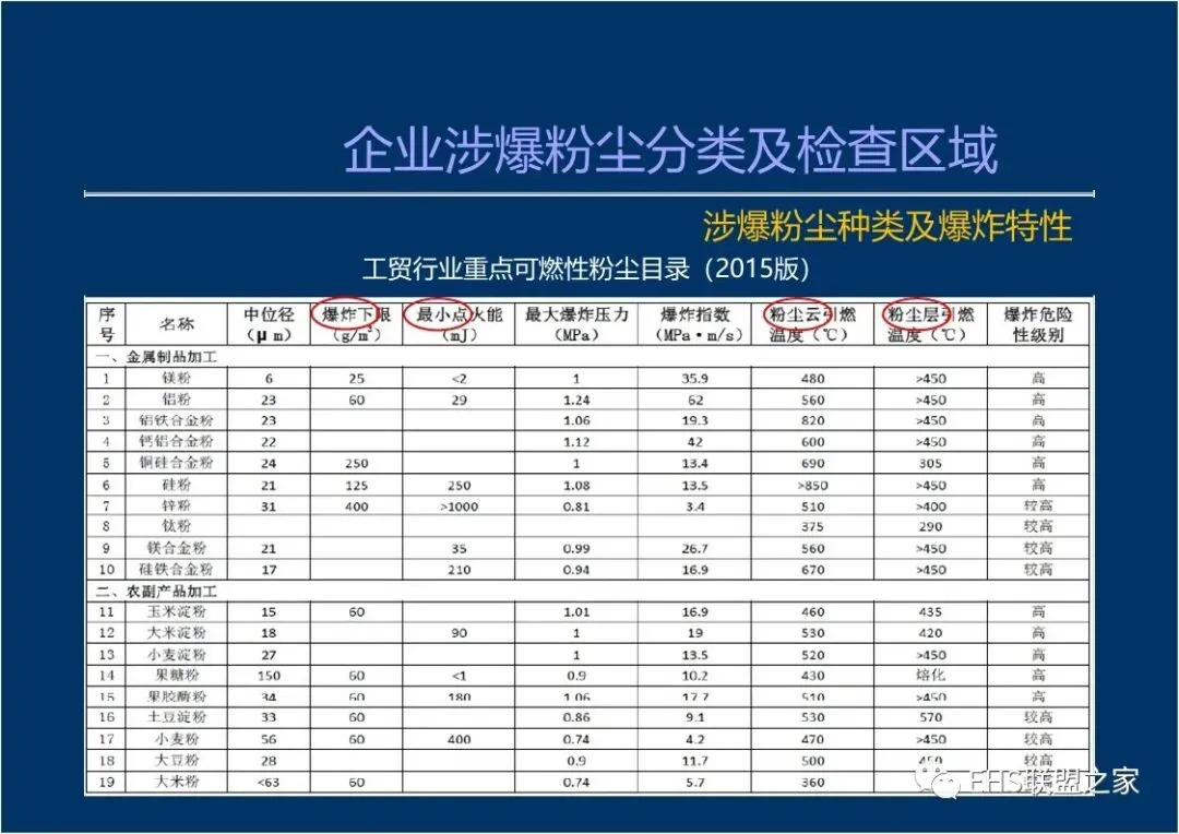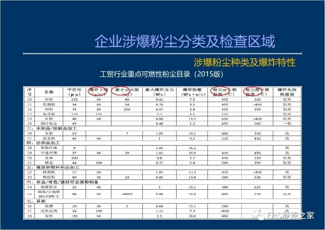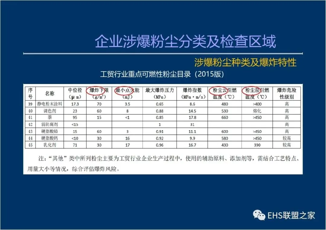 企业涉爆粉尘分类及检查区域