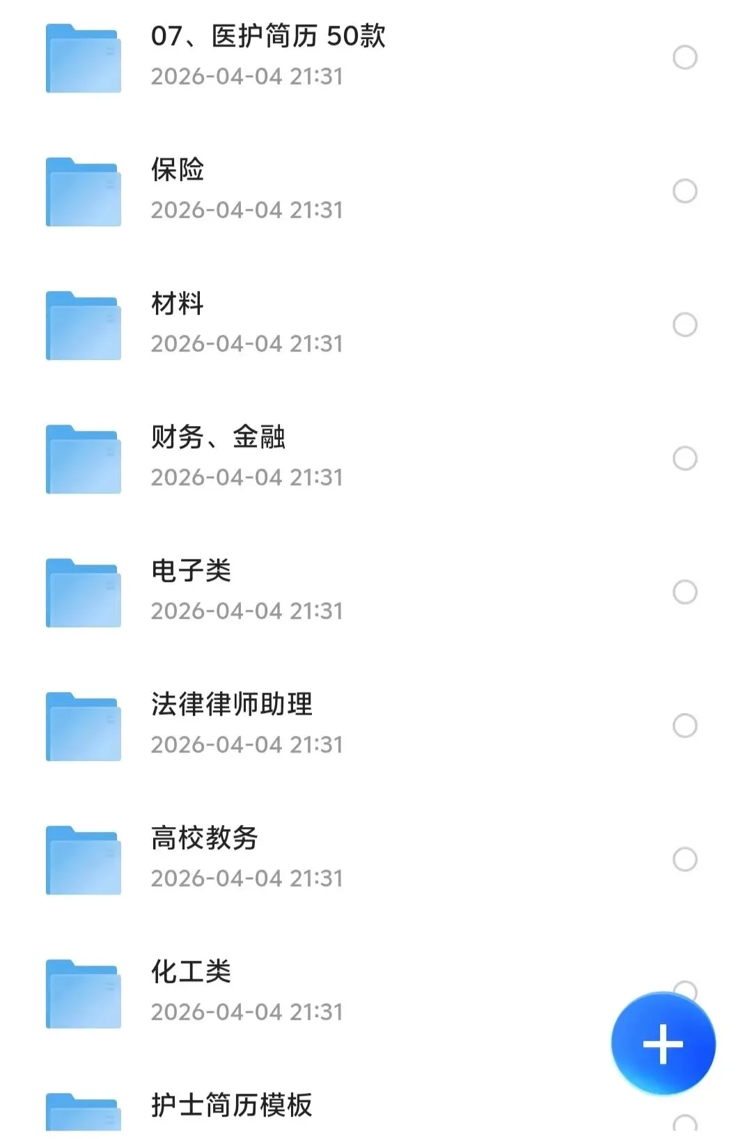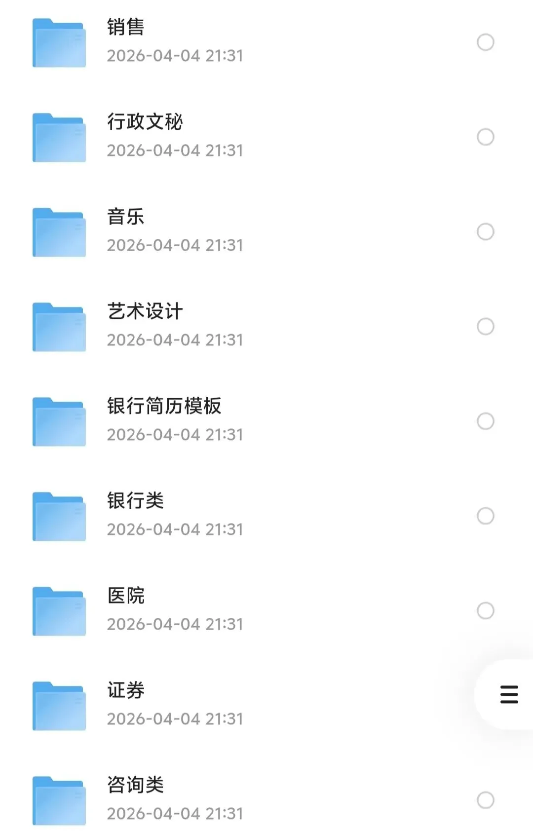 除了上面展示的预览图,我们还有各种职业类型的简历提供给大家哦~
