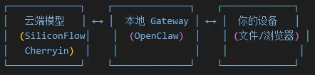 数据不出本地——隐私敏感操作(读文件、发消息)在本地完成 低延迟——没有云端中转,命令下发即执行 离线可用——模型可以切换,本地能力永远在线 成本可控——模型 API 按调用付费,没有平台抽成