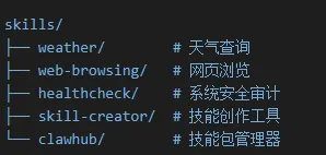 OpenClaw 的核心设计是技能 (Skills) 系统: