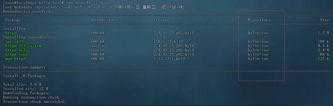 # 备份系统自带的源文件 mv /etc/yum.repos.d/kylin_x86_64.repo /etc/yum.repos.d/kylin_x86_64.repo.bak tee /etc/yum.repos.d/local-iso.repo <<EOF[kylin-iso]name=Kylin Local ISObaseurl=file:///mnt/kylin-isoenabled=1gpgcheck=0priority=1EOF