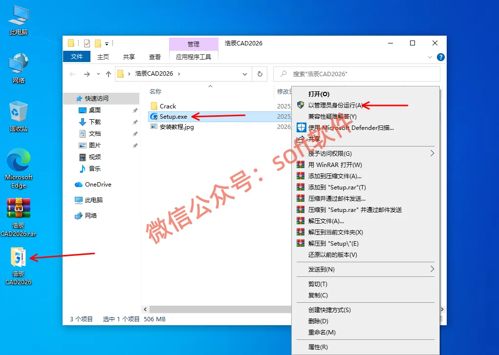 1,右键解压安装包至当前文件夹(注意,解压之前先关闭杀毒软件和window安全中心。)