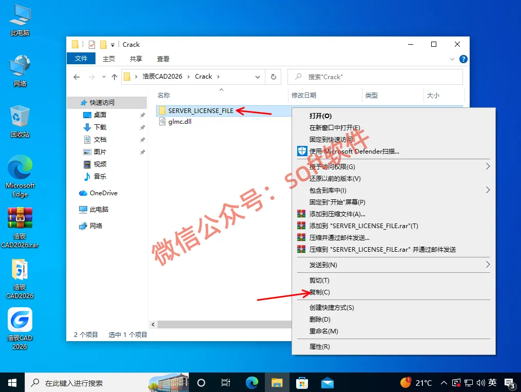 10,鼠标右键SERVER_LICENSE_FILE文件夹,选择复制