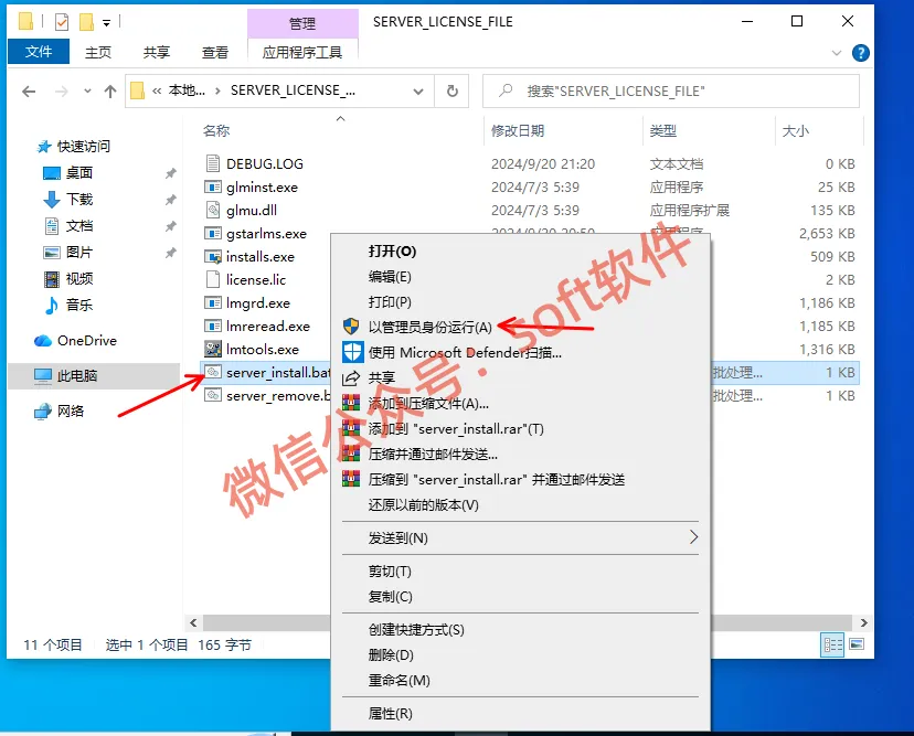 13,鼠标右键,以管理员身份运行server_install.bat,选择以管理员身份运行