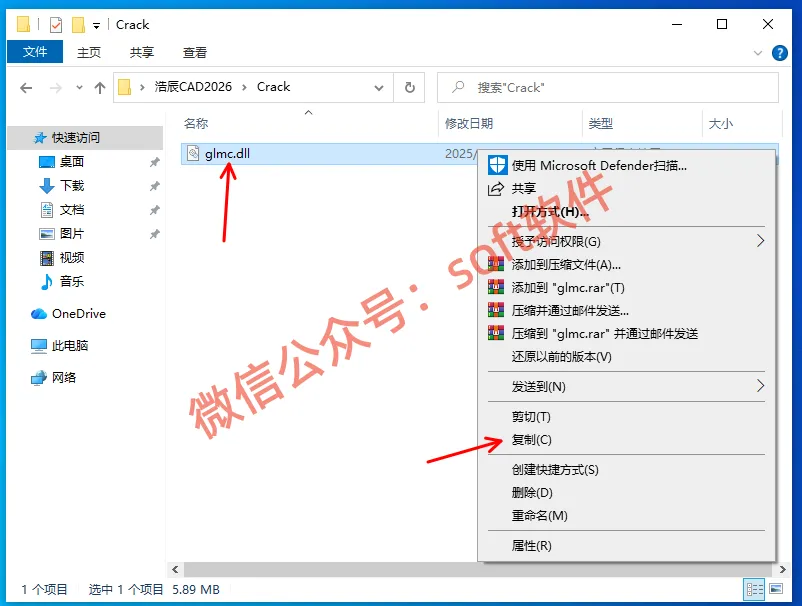 15,再次回到Crack文件夹,鼠标右键glmc.dll,选择复制