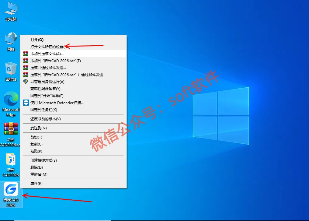 16,回到桌面,鼠标右键浩辰CAD2026启动程序,选择打开文件所在的位置